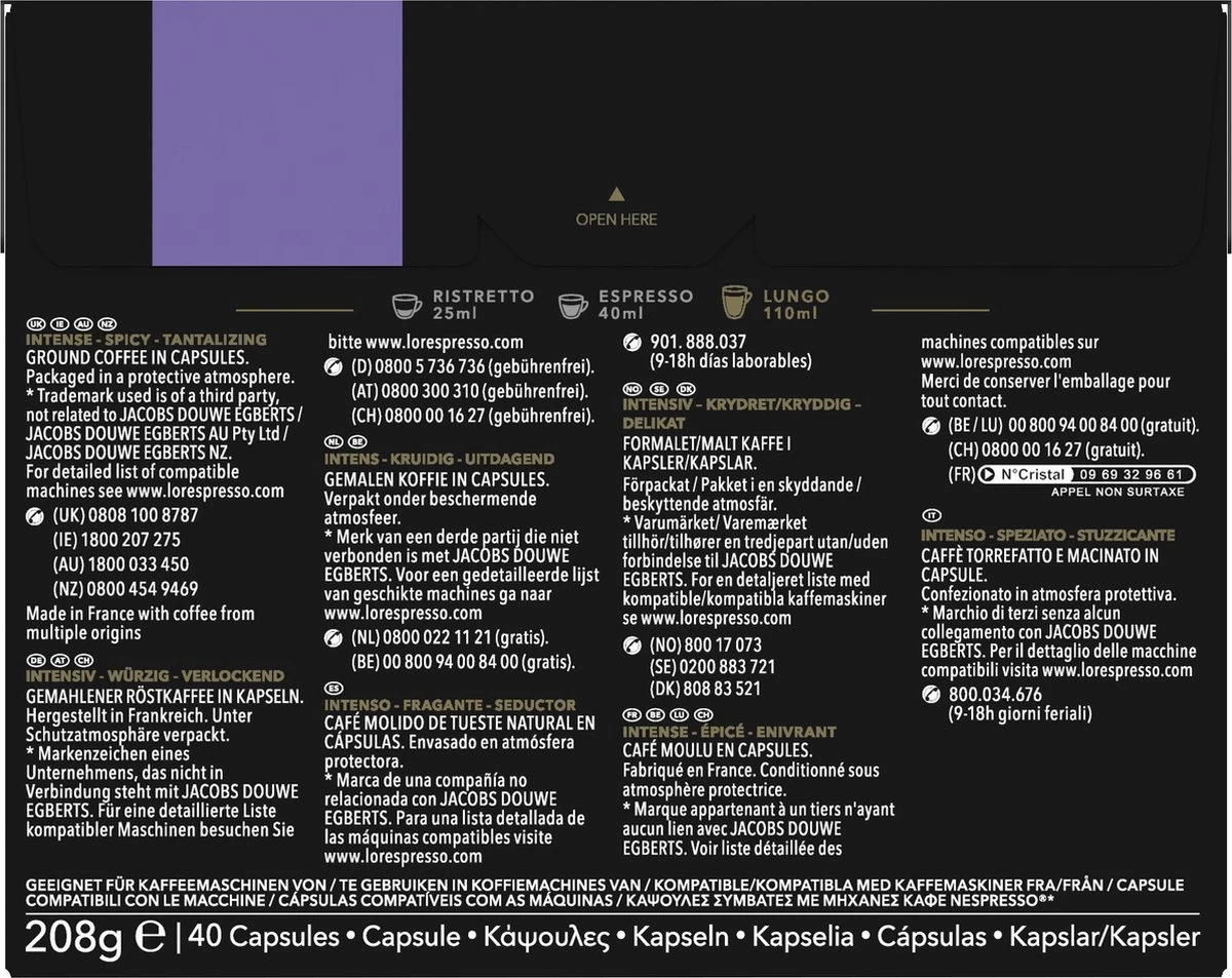 L’OR Lungo Profondo Koffiecups – Intensiteit 8/12 – 4 X 40 Capsules