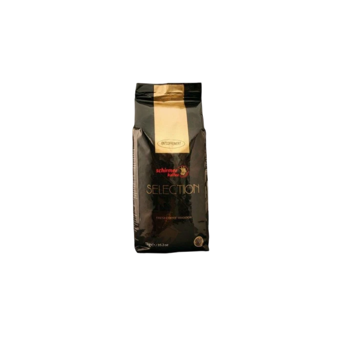 Cafeïnevrije koffiebonen van het koffiehuis Schirmer uit Dortmund. Deze cafeïnevrije koffiebonen zijn samengesteld uit zowel Arabica als Robusta bonen. Juist de gebruikte Robusta bonen zorgen voor een volle smaak en iets krachtigere afdronk. De crèmelaag van de Schirmer Selection decaf is stevig en okergeel van kleur.